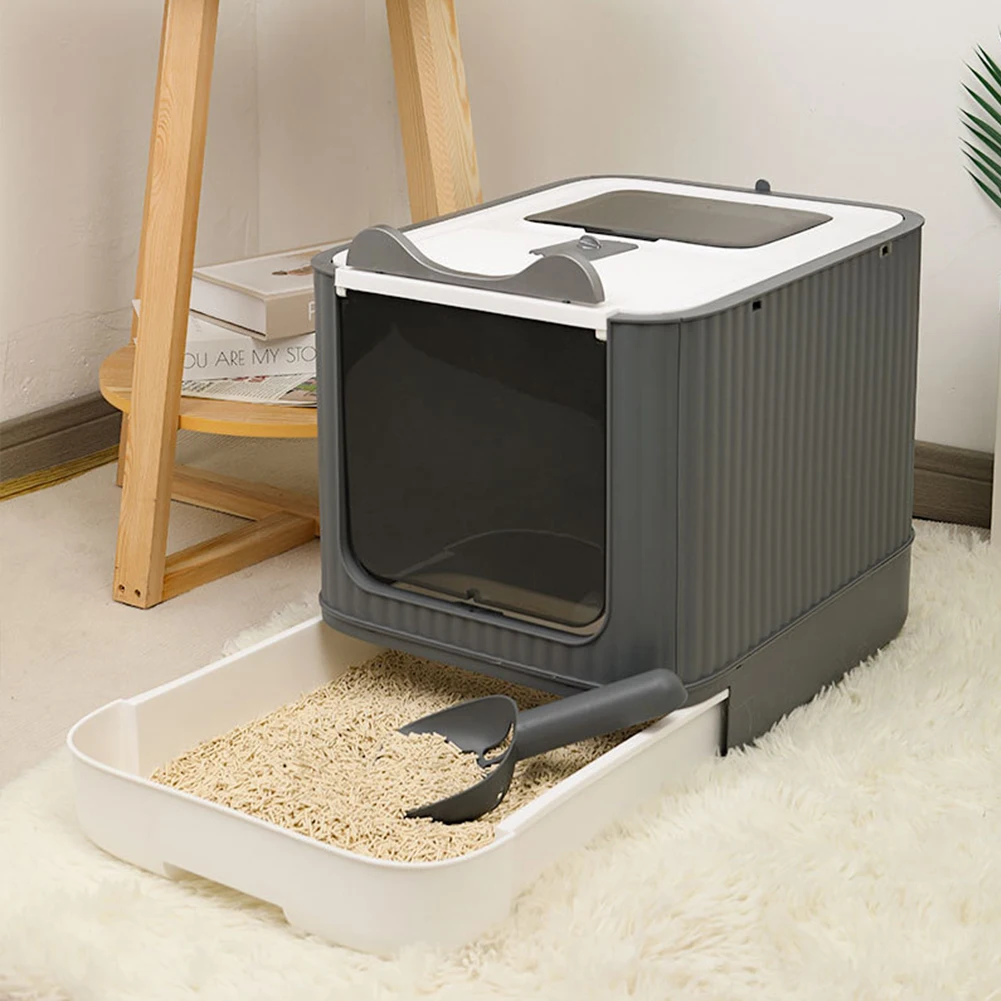 4. Spacious Design: The fully closed sandbox offers ample internal space, allowing your cat to enter, exit, and turn around effortlessly. The roomy interior helps reduce odor spread, keeping your home smelling fresh.