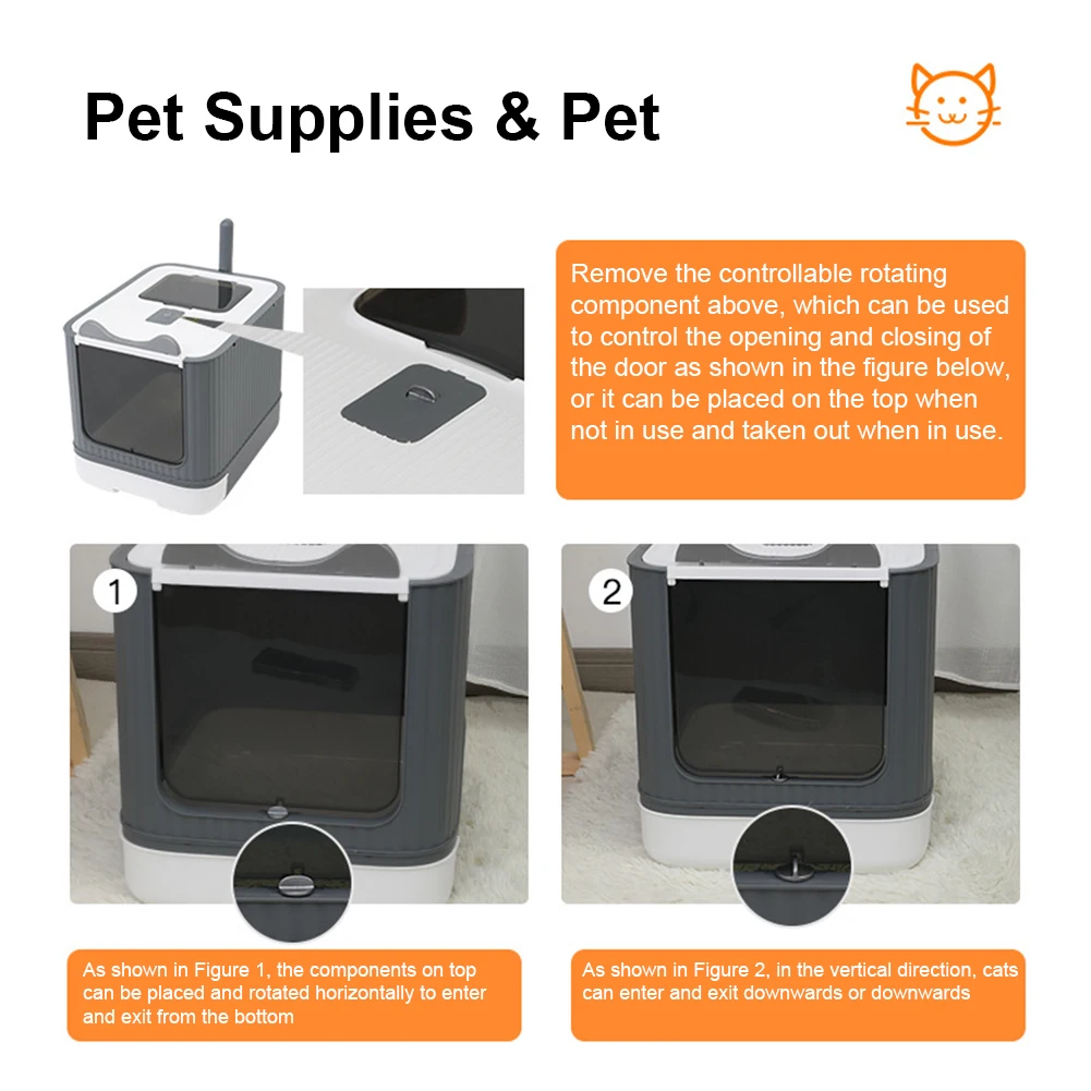 Foldable Cat Litter Box Front Entry Top Exit Litter Box Deodorant Cat Toilet Fully Enclosed Pet Cleaning Kitten Training Toilet